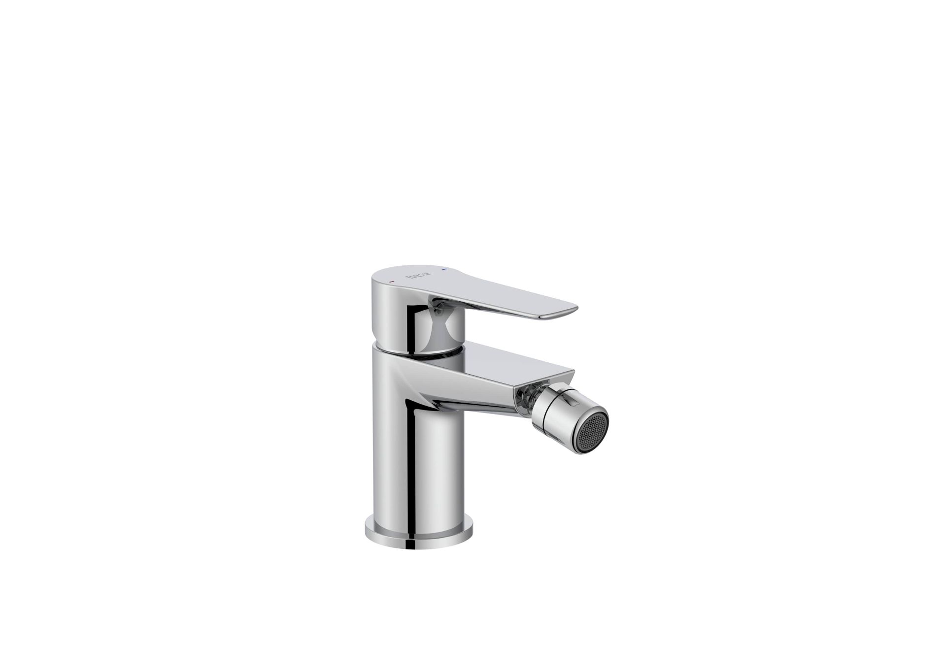Grifería para bidé con cuerpo liso, regulador de chorro a rótula y enlaces de alimentación flexibles.