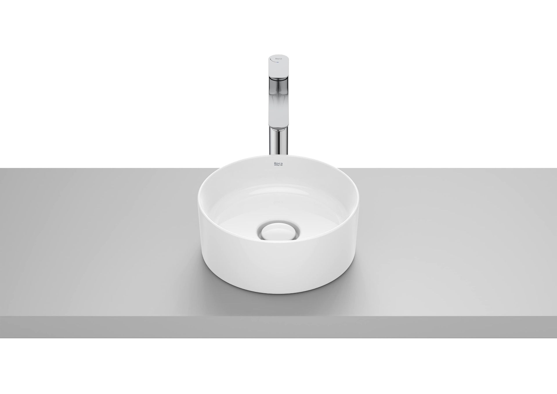 Lavabo de Fineceramic® de sobre encimera. No incluye grifería. Incluye tapón fijo abierto cerámico.
