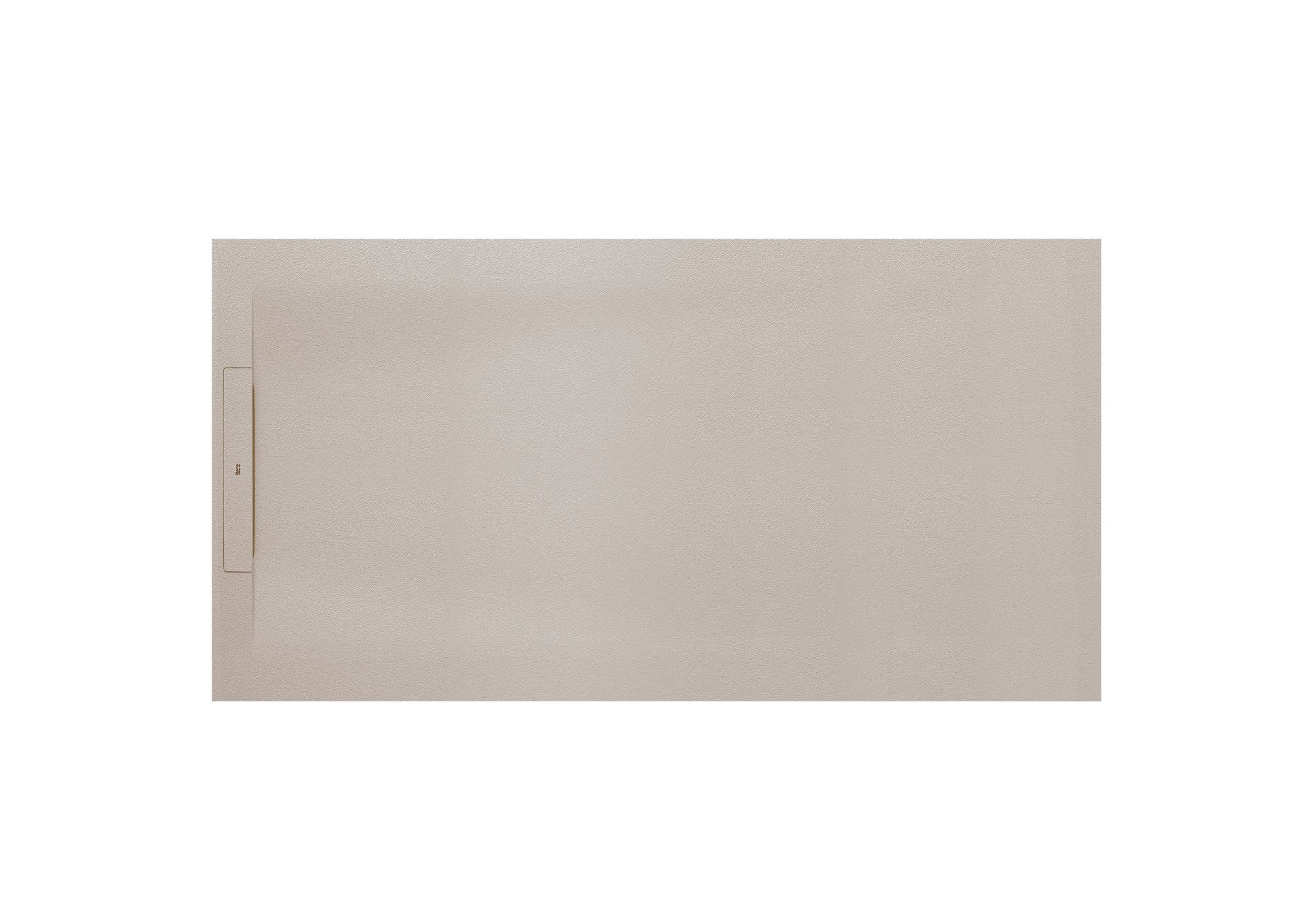 Plato de ducha PYROS 2000x800 mm STONEX con textura arena antideslizante. Incluye válvula de desagüe y rejilla.