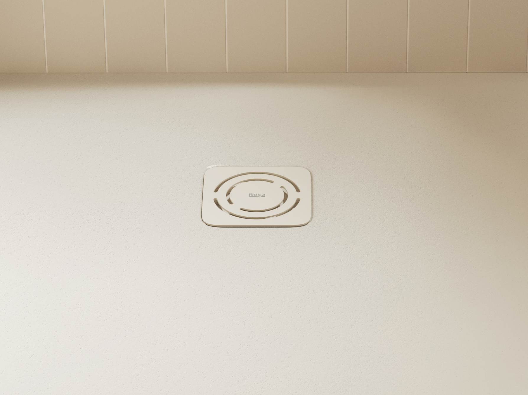Superficie antideslizante con textura grava. Extraplano. Incluye desagüe de gran caudal y rejilla Twist en el mismo acabado de color.
