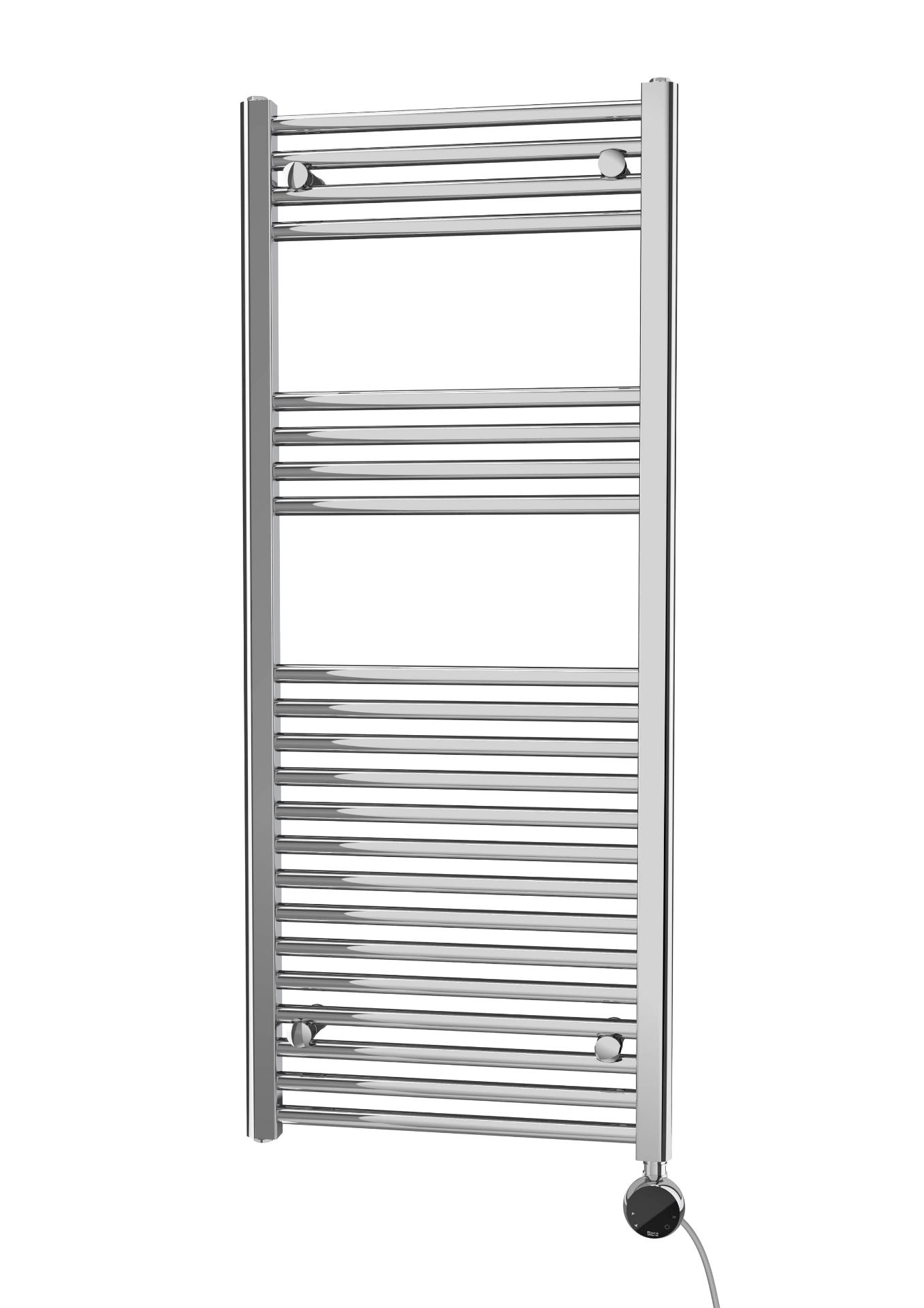 Radiador toallero eléctrico VICTORIA-N. Acabado cromado, medida 1200x500. Con termostato 3 funciones: 4 niveles de temperatura, temporizador de potencia con auto-off. Potencia 300W. Bajo consumo durante modo reposo.Con kit montaje.Potencia 500W