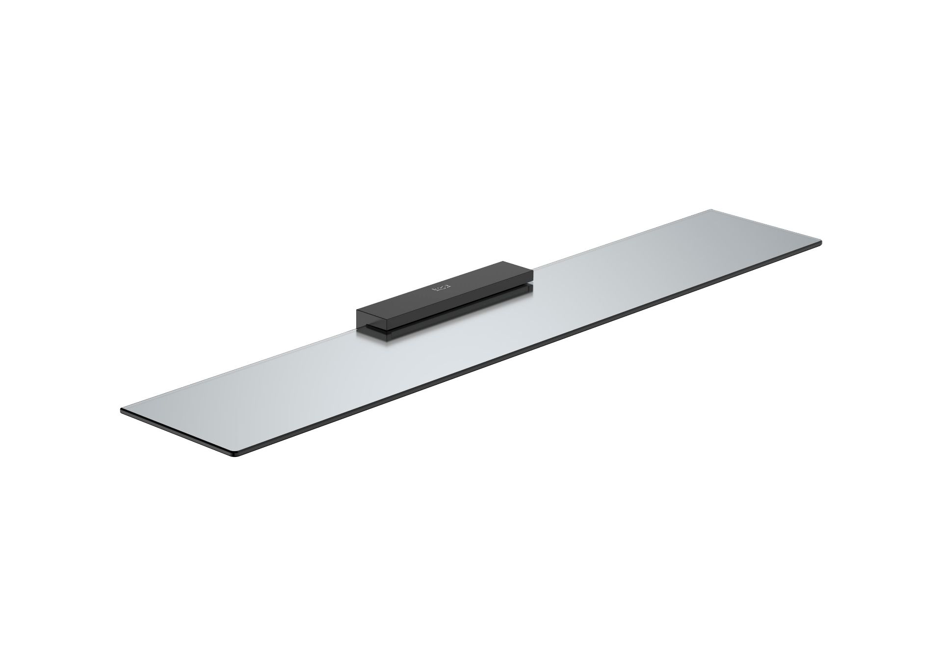 Repisa cristal modelo HOTELS ROUND acabado negro mate. Medida 600x120x23. Instalación mediante tornillería. Incluido sistema de fijación.