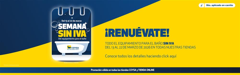 DEL 13 AL 22 DE MARZO, visita tu tienda online COYSA favorita y llévate todo el equipamiento para la reforma de tu baño sin pagar el IVA.