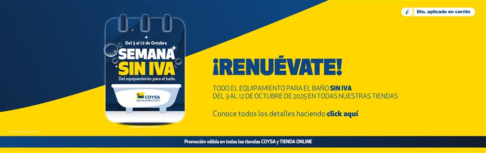 DEL 3 AL 12 DE OCTUBRE, visita tu tienda online COYSA favorita y llévate todo el equipamiento para la reforma de tu baño sin pagar el IVA.